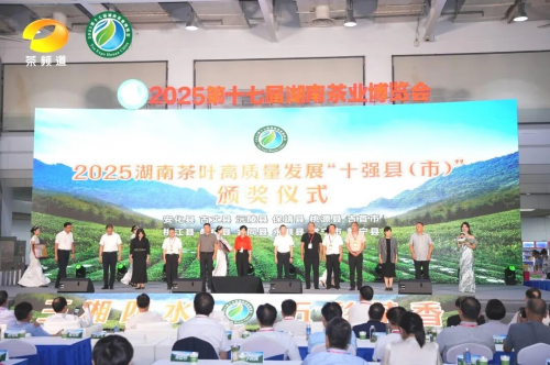 为树立产业标杆,开幕式上发布了2025湖南茶叶高质量发展“十强县(市)”“十大品牌”“十佳科技领军企业”选树结果,和“2025第十七届湖南茶业博览会‘茶祖神农杯’五星茶产品暨优秀组织奖”通报。安化县、古丈县等12个县市获评“十强县(市)”,碣滩茶、桑植白茶等10个品牌入选“十大品牌”,湖南省茶业集团股份有限公司、理想华莱科技集团有限公司等10家企业跻身“十佳科技领军企业”。74个茶产品获评“五星茶产品”,益阳市茶业协会、湘西州茶叶产业发展中心等47家单位获“优秀组织奖”。“茶三十”引领产业升级激励全行业以先进为榜样,“五星茶产品”推动产业提质增效。